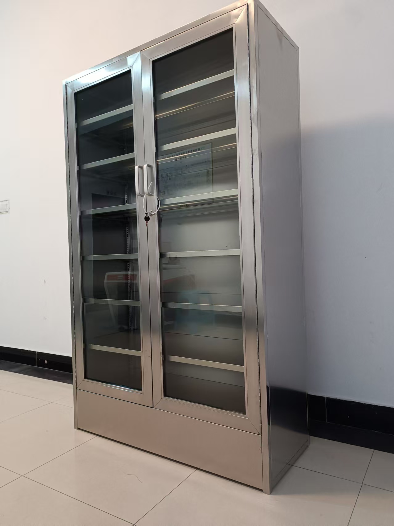 品名:加厚不锈钢四门器械柜 304加厚钢板材料尺寸:1100*450*1800mm 包装:纸箱+木架1.采用不锈钢材料进行弯折、压折、焊接成型