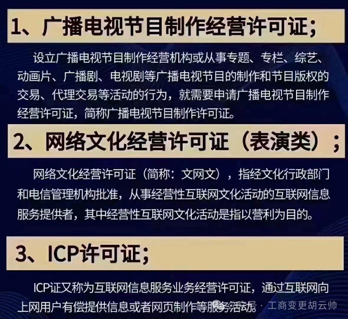 其他资质与备案同步变更:如ICP许可证、广播电视节目制作经营许可证等,需同步向通信管理局、广电等部门办理变更备案。