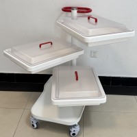 小推车二层、三层独立式设计,周转盘材料由高分子复合材料独立开模制成,车体由钢体喷塑而成,具有耐腐蚀、不沾水、车行顺畅、取放方便等优点。盘内内镜存放导航隔条使污染部分分离。多层设计使客户在使用过程中可将清洁和污染的内镜分层标明后置放,可达到高效周转,避免交叉感染等功效。