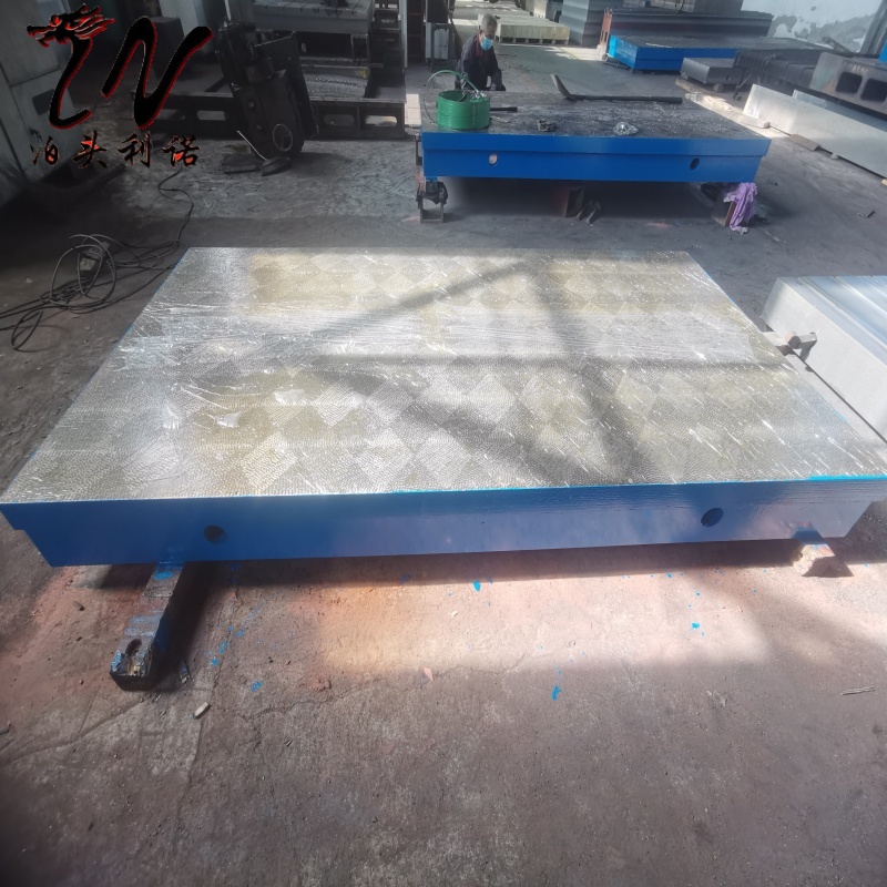 泊头市利诺工量具有限公司是铸铁平台生产厂家,铸铁平台生产厂家供应检测平台、焊接平台、铸铁平板一般单块规格为100x100mm-3000x8000mm,大于此规格时可以把多块拼接在一起使用,特殊规格可按图定制。产品以生铁为原材料经冶炼、铸造经人工时效或者自然时效处理,工作面经机械加工(刨、铣、磨)后再由本公司刮研、铲刮技术人员手工刮研、铲刮或者研磨制造而成,工作面上可加工V型、T型、U型槽和圆孔、长孔等。具有美观大方、稳定性好、精度高等特点,产品制造完成后应达到外部表面无缺陷,内部无气孔和砂眼的基本要求。