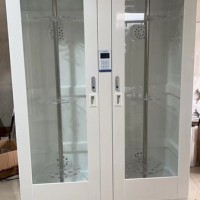 微电脑数显储存柜产品介绍A:数显储存柜分为单门储存柜DX-SX-I和双门储存柜DX-SX-II,硬镜储存柜DX-SXY-I;(型号命名的含义DX为迪新品牌,SX为数显简称,I为单门,II为双门,Y为硬镜简称)B:软镜储存柜规格参数:单门储存柜规格为630*535*2080mm(长*宽*高);双门储存柜规格为1150*535*2080mm(长*宽*高),外部采用多工艺处理的钢塑材料,内胆采用优质高分子材料,独立的开模整体吸塑成型,无缝隙,不藏污垢;易清洗、表面细菌残留低,使用方便、安全、快捷,对内镜无磨损。外壳与内胆融为一体,柜内空间密闭效果优异,外观简洁实用,美观大方。软镜柜内部设有上中下三层内镜悬挂系统,全方位的定位内镜,防止相互碰撞。内设智能化自动控制紫外线,循环风的消毒程序,消毒工作自动累时,另有照明、通风、循环干燥、温度湿度显示等功能。单门可储存4-6条内镜,双门可储存6-12条内镜。C:硬镜储存柜规格参数:规格为:630*535*2080mm(长*宽*高)外部采用多工艺处理的钢塑材料,与软镜的不同是硬镜柜没有高分子内胆。