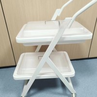 小推车二层、三层独立式设计,周转盘材料由高分子复合材料独立开模制成,车体由钢体喷塑而成,具有耐腐蚀、不沾水、车行顺畅、取放方便等优点。盘内内镜存放导航隔条使污染部分分离。多层设计使客户在使用过程中可将清洁和污染的内镜分层标明后置放,可达到高效周转,避免交叉感染等功效。