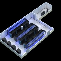首先,机房效果图应具有全面的视觉效果,从室内外的灯光、装饰物品、空调系统、网络系统等方面,例如机柜机身的金属质感,内部氛围灯的表现,金属铝扣板,列头柜,UPS的外观写实渲染。