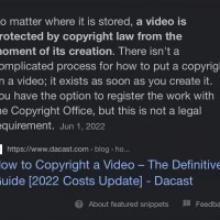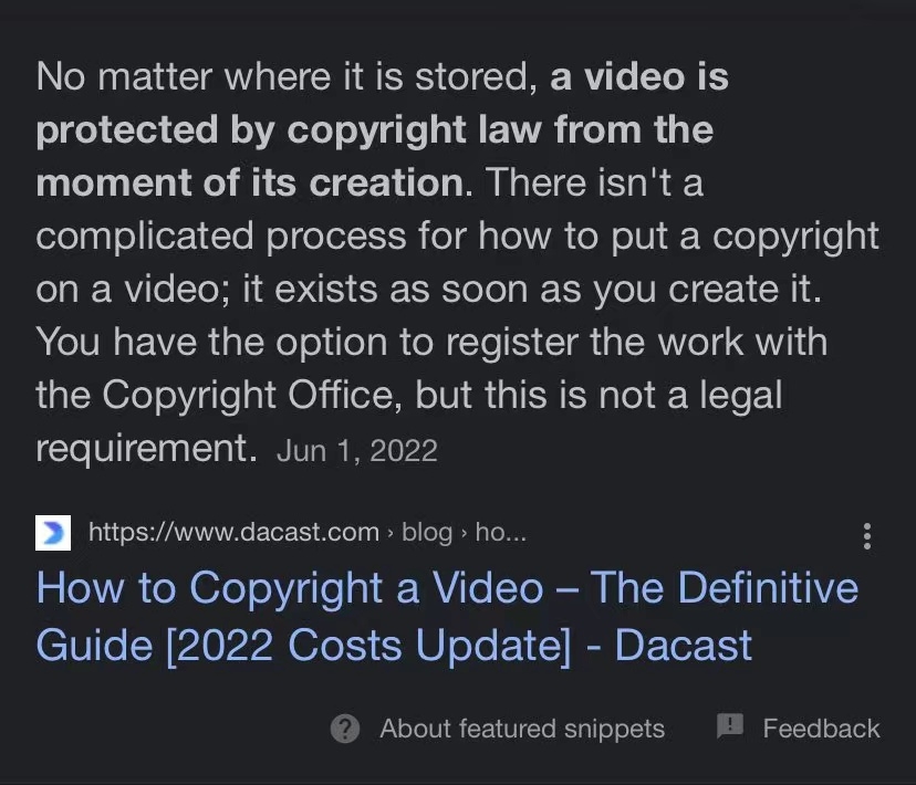 无论存储在哪里,视频从创建之日起就受到版权法的保护。它一创建就存在。